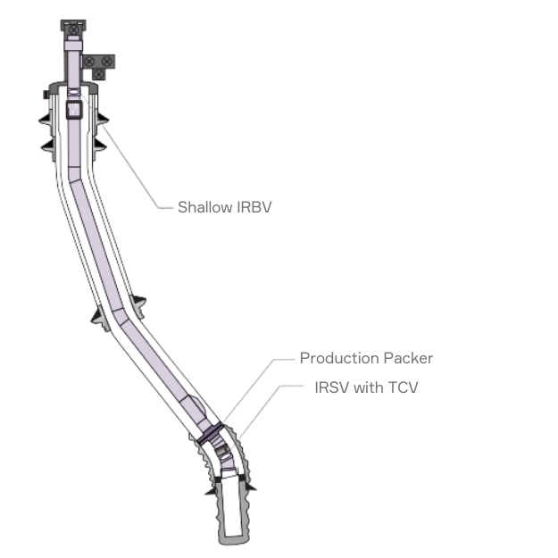 The operator utilized Interwell’s Inter Remote Shatter Valve (IRSV) as the deep barrier plug together with Tubing Check Valve (TCV). Flapper valves in the TCV allow well fluid to flow from the annulus into the tubing, self-filling the tubing during RIH. The Inter Remote Bypass Valve (IRBV) was used as the shallow barrier valve. It was installed with the bypass ports in open position allowing for communication down tubing. The Completion was landed and the well was pressured up against the deep IRSV and TCV to set the Production Packer. Prior to BOP removal, the IRBV was remotely activated to close position, leaving a V0 bi-directional barrier in the well. After installation of an x-mas tree both the shallow IRBV and the deep IRSV were successfully cycled open to start well production.
